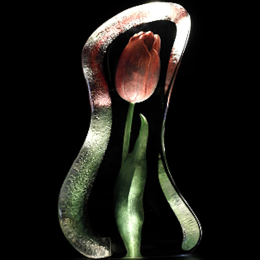 Cast crystal sculpture with painted and sandblasted motif. Conscious of our environmental responsibilities, this sculpture has been hand-painted using organic colours. To preserve the beautiful finish of the piece, do not use strong cleaning agents and keep it away from strong direct sunlight. The sculpture is handmade in Sweden and signed on the bottom. Design Robert Ljubez Colour: Clear WxH=90×185 mms / 3,5×7,5”